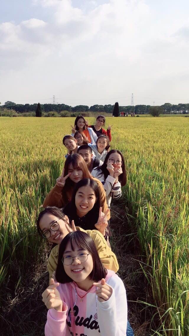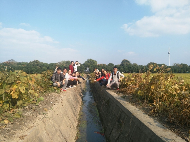 最后,同学们实地考察了“蛙稻米”生态农田。邓老师和易经理详细地为大家介绍了田中的机械化耕种和水渠、湿地的净水功能,分析了其中的生态学原理。除了作物生产,该基地还具有旅游休闲的功用,在田埂上奔跑嬉戏、一同合影的同学们在这里放松身心,感受到了别样的惬意,因而纷纷赞同在乡野建设观光与农业相结合的规划设想。