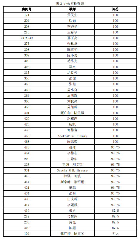 此次检查中,大多数学生办公室干净、明亮,有三分之二的学生办公室获得满分,值得学习。但仍有一些学生办公室有违章电器微波炉、冰箱上有杂物等问题,需要注意和改正。希望大家能继续保持较好的办公室环境,在干净、整洁、安全的环境中学习和生活。