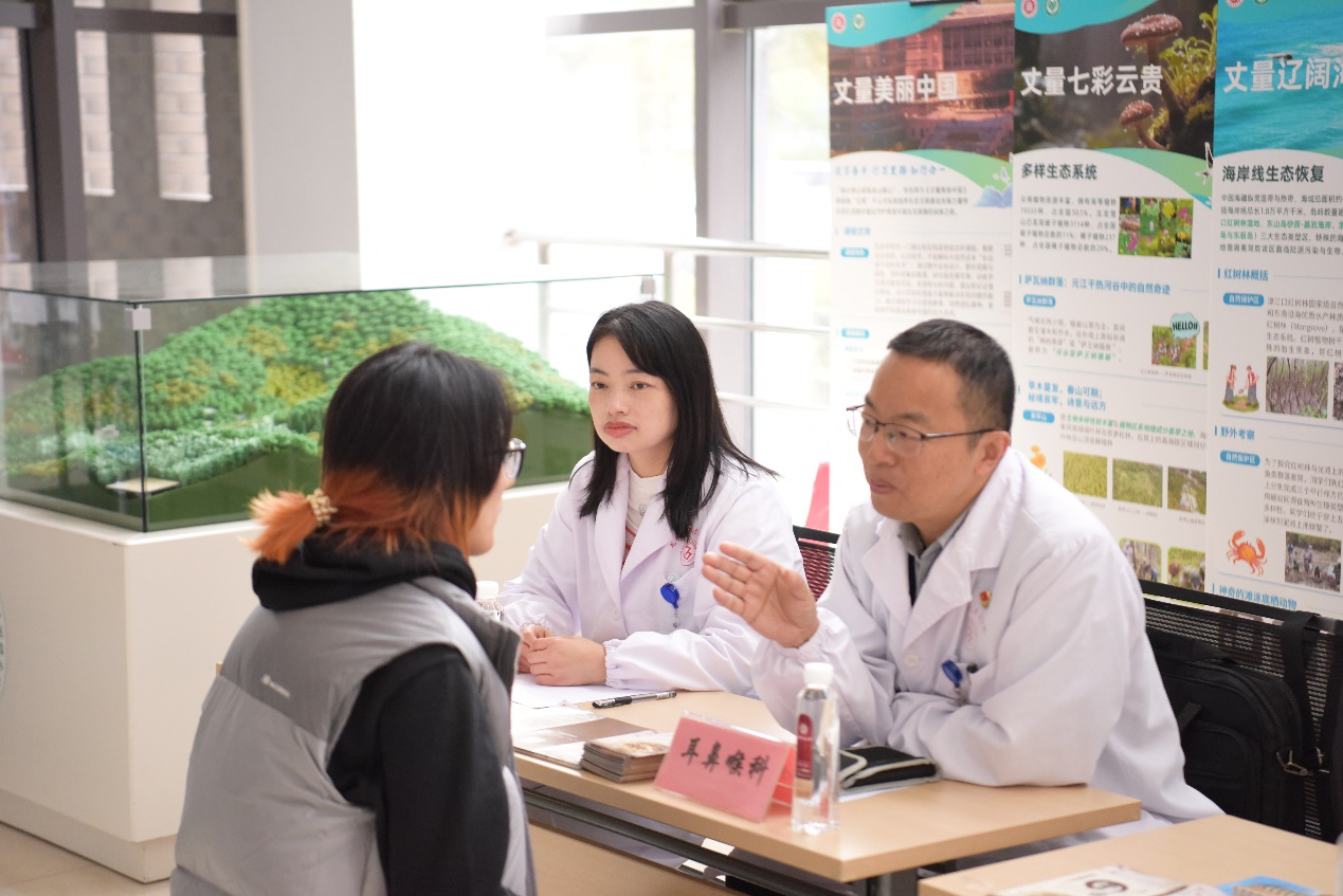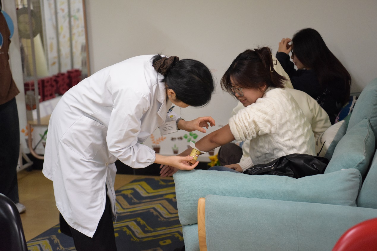 科普讲座结束后,闵行区中西医结合医院的涉及近10个科室的专家团队在资环楼大厅开展便民义诊服务。中医问诊、健康咨询、中医非药物治疗体验等多项服务同步上线,吸引了大批师生踊跃参与。不用跑医院,在校园里就能享受到优质、便捷的中医药健康关怀,这样的活动让师生直呼“贴心又实用”,收获了满满的好评。