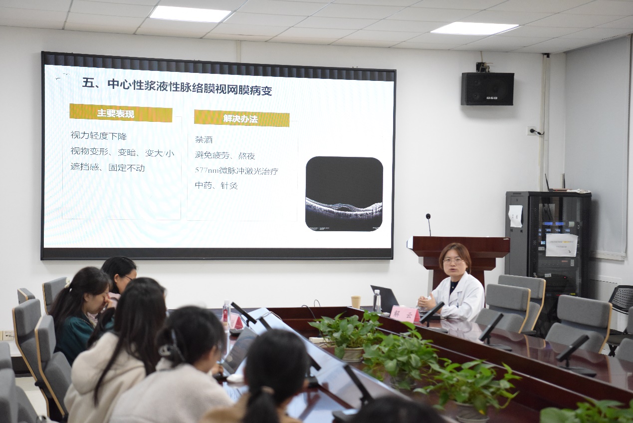 闵行区中西医结合医院眼科主任解云为师生带来“高校教师常见眼病与儿童近视防控”主题讲座。解主任将科学护眼知识融入实际案例,为现场师生带来了一份生动的科学养生“指南”,同时也提供了沉浸式的眼科非药物治疗体验,让大家在学与用中,将健康生活的理念内化于心。