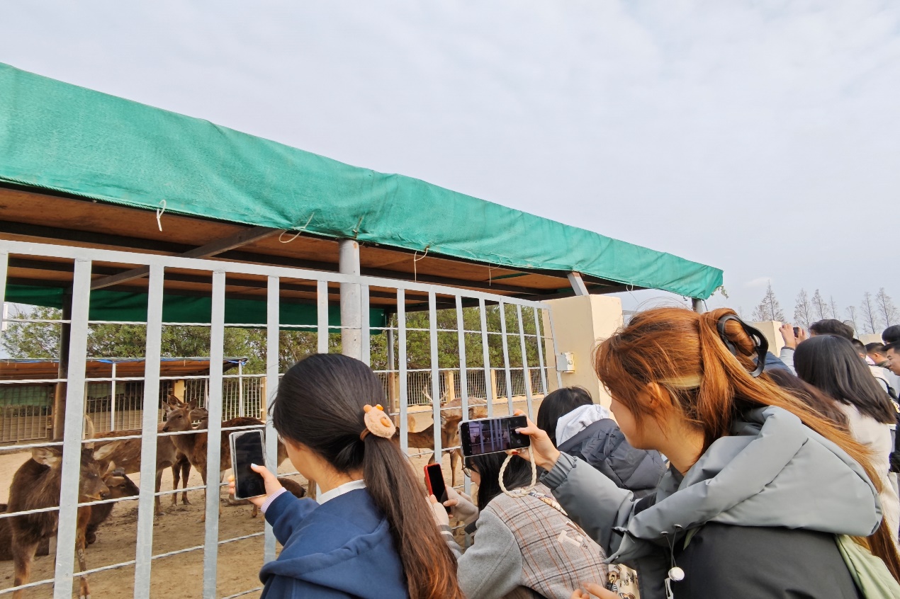 同学们参观打卡鹿场