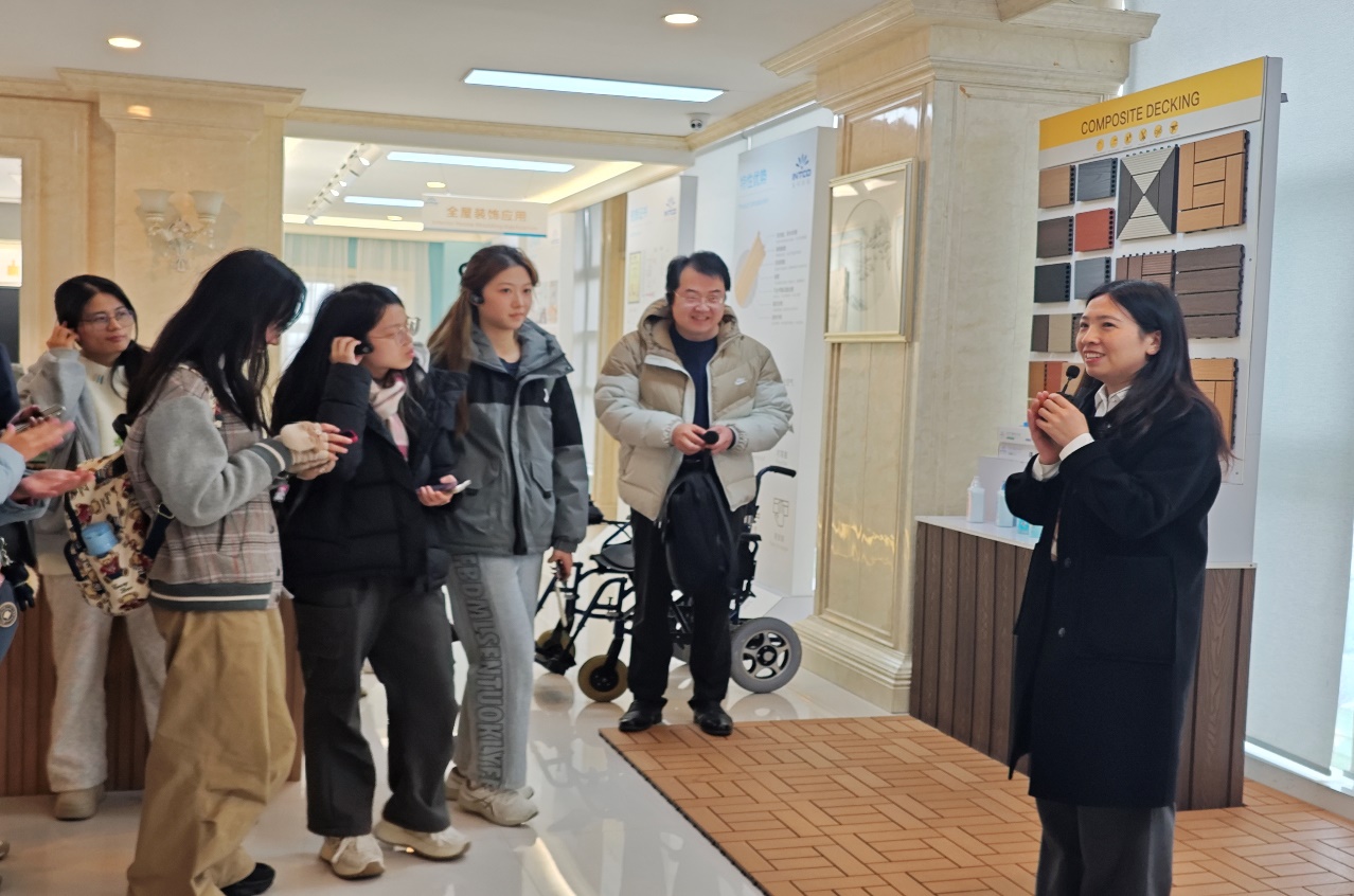 在结束厂区的参观后,同学们前往今日行程的最后一个目的地——英科再生资源股份有限公司。英科是一家在资源再生领域极具影响力的企业,它专注于塑料的再生利用,通过先进的技术和创新的工艺,将废旧塑料转化为高价值的再生产品。公司行政主管周芳芳等人热烈欢迎各位同学和老师参观英科再生资源股份有限公司,并向师生们展示英科再生的相关产品,同学们充分领略到了英科再生在资源再生领域的成就与创新理念。
