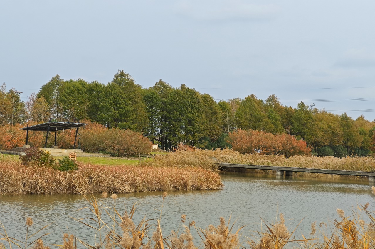 上午,同学们从学校西门出发,在乘坐了45分钟的车后,顺利抵达上海化学工业区。随后在上海化工区物业公司工作人员引领下,进入园区参观。上海化工区湿地建成于2008年,是我国首次利用生态湿地进行化工污水处理探索尝试的化工园区,同时也是一个集水质净化、生物多样性、科普教育、美观、智慧监测于一体的展示平台。