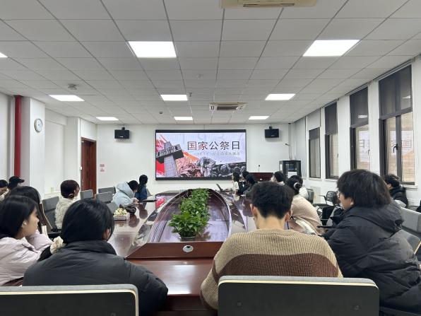 王梓睿带领大家学习国家公祭日设立的历史背景、意义,使大家深刻认识到历史的沉重与和平的珍贵。她指出,国家公祭日不仅是对遇难同胞的深切缅怀,更是对历史的反思与警示,表达了中国人民坚定不移走和平发展道路的崇高愿望。特别是在抗战胜利暨世界反法西斯战争胜利80周年即将到来之际,国家公祭日的意义愈加凸显。王梓睿还带领大家回顾了2014年、2017年与2023年的公祭活动,展示了“国家公祭鼎”及其铭文,进一步激励党员们不断弘扬以爱国主义为核心的伟大民族精神。