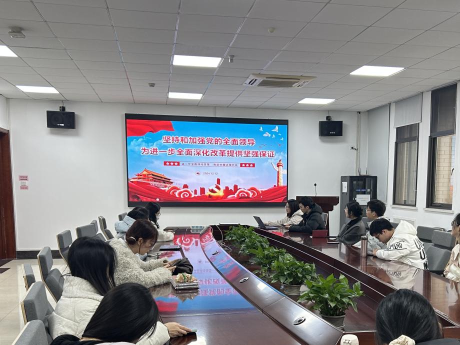 活动伊始,朱锐云带领全体党员深入学习党的二十届三中全会精神,并围绕“坚持和加强党的全面领导”主题进行分享。通过学习,支部同学进一步认识到,党的全面领导是推动改革取得成功的根本保障,是应对新时代复杂局面、确保改革方向正确的关键所在。同时,大家还深刻理解到,党在推动中国式现代化进程中的核心作用。通过以上内容的学习使党员们更加坚定了加强党的领导、落实党的决策部署的思想意识。