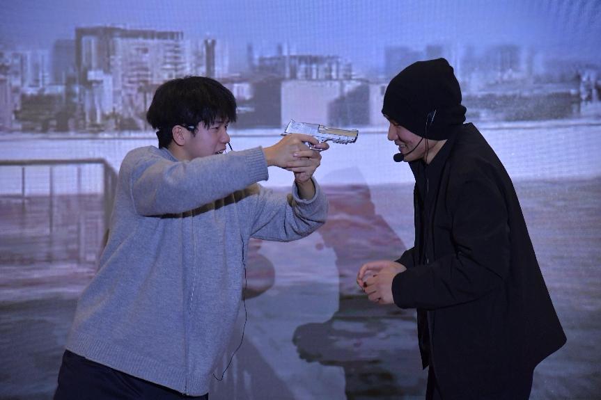 双人舞《失眠派对》诠释了夜晚的独特记忆,而后小品《人质》引发了我们对压力和人性深刻的反思,两位同学的精彩演绎,将全场气氛推至沸点。