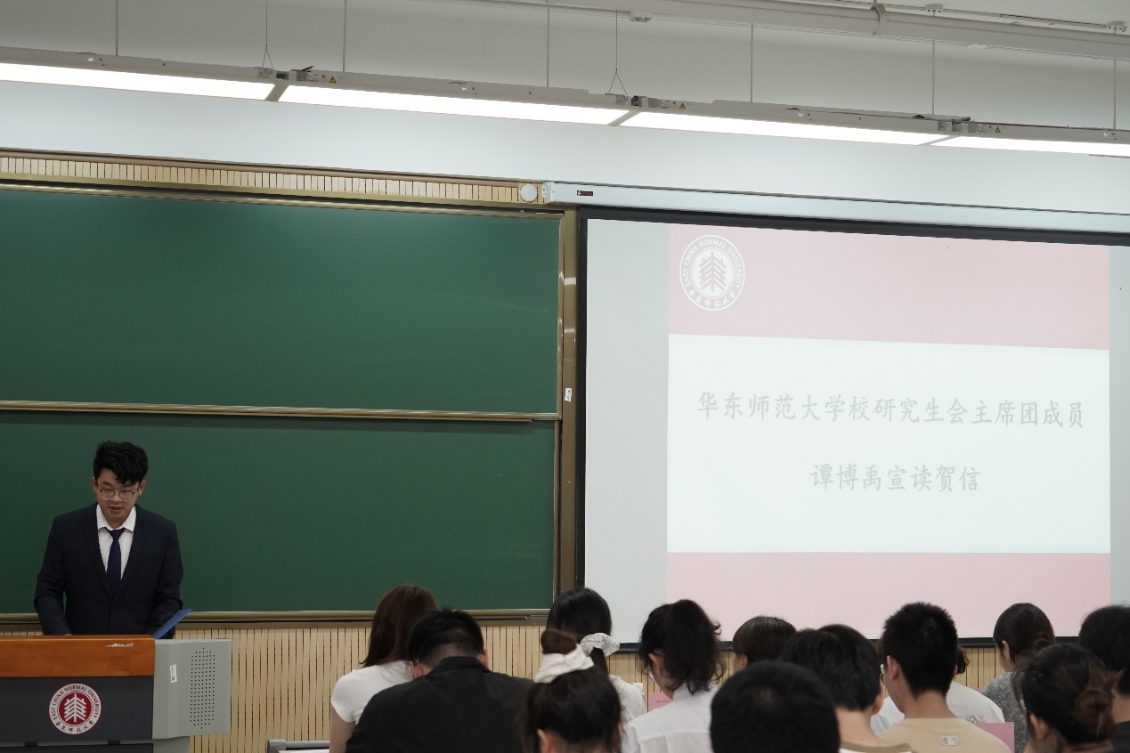 黄色直播 研究生会主席团成员谭博禹宣读贺信,他对生环研会在学校活动中的积极参与和取得的丰硕成果表示赞扬和祝贺,并对未来工作中的进一步团结协作寄予了新的期待。