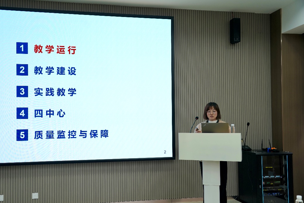 学院本科教学秘书王娟娟代副院长徐娟详细通报了本学期本科教学的重点工作。她首先介绍了教学运行方面的新举措,着重解读了课程计分方式调整、听课要求变化等内容。随后,概述了教学建设的主要任务,实践教学环节相关的双创、竞赛计划的推进,教学质量评定办法修订等工作。