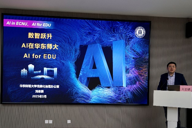 会议第一项议程为“信息化服务进院系”宣讲活动。刘志鹏主任以“数智跃升:AI在华师大”为题,全面介绍了学校的数智跃升计划及其重点任务。他详细阐述了学校从无到有构建起的数智治理“驾驶舱”,利用AI重塑学科专业生态、赋能教育教学。在信息化服务方面,学校打造了专属的AI门户,并成功接入DeepSeek系统等先进工具,通过智能化平台实现治理数据的实时共享及可视化呈现。此外,刘志鹏主任通过一系列丰富的案例剖析,展示了学校在智能化解决方案方面的探索与应用,有效推动了老师们研究视野的拓展和工作效率的提升。