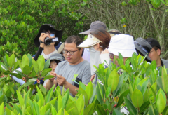 首先,王教授为同学们简要介绍了漳江口红树林的基本情况和红树植物的主要类群。红树植物树干呈红色故称“红树”,植物体内富含单宁,还有特殊的胎生现象,即红树植物的种子在离开母树前就会萌发长出胚轴。红树植物的主要类群并不繁杂,漳江口的红树林植物主要有白骨壤、秋茄、桐花树、木榄、红海榄、老鼠簕、鱼藤、卤蕨等。