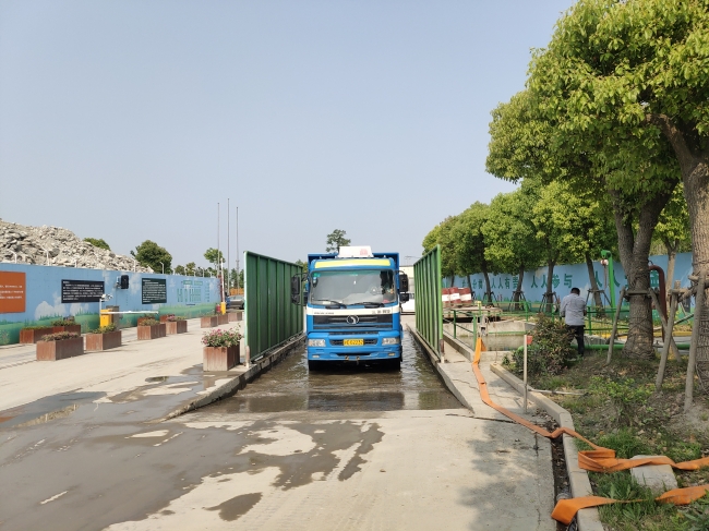 在建筑垃圾区域同学们看到了作业中的洒水车,毛经理对厂区内洒水控制粉尘、来往车辆清洁及循环用水等进行了讲解。毛经理也表示,上海垃圾分类后两网融合站点垃圾减量化有很大改善,各类物品的纯净度也大大提高。