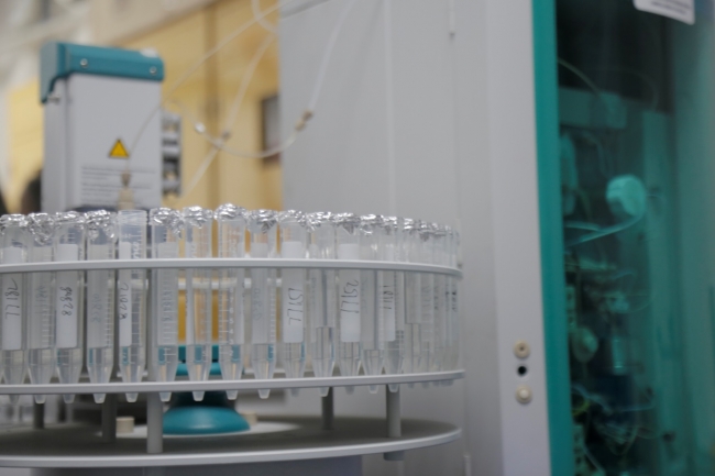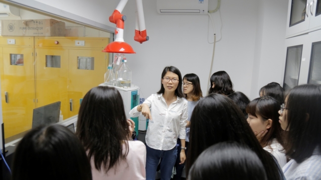 第二个参观的是大气研究所中的城市大气复合污染成因及防治重点实验室。我们主要参观了气溶胶实验室和挥发性有机物实验室。大气研究所的气溶胶研究面向我国东部沿海城市复杂的大气复合污染,利用外场高分辨率观测和离线分析等手段,基于观测数据,开展颗粒物来源分析,为确定气溶胶污染的有效控制途径提供科学技术支持。挥发性有机物研究主要包括挥发性有机物的源排放、过程追踪和环境效应。在这两个实验室内大家从样品的采集到样品的检验分析对大气污染的相关领域有了一定的了解。