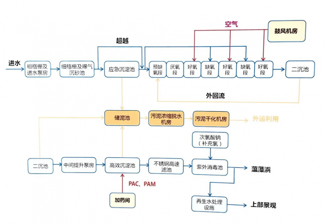 下沉式再生水厂已实现地上地下空间统筹规划,将单一的污水处理厂变成了城市生态综合体,实现了污水处理及再生利用,具有土地集约、环境友好、资源利用率高的特点,具有较大的发展潜力。