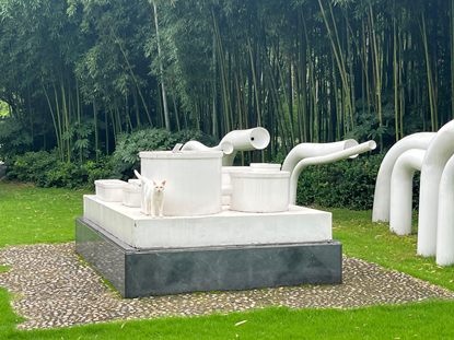 龙泓涧的综合治理工程主要分为以下几个流程:一、查清污染源头,摸清自然水体的承载量;二、设置生态径流截流沟渠以防止短流,使水体与溪床充分接触;三、生态溪床修复,运用反硝化反应减少水体中的氮;四、生物填料接触氧化;五、生态净化塘等。据带队老师介绍,治理后的龙泓涧每天的氮净化量为0.5-1g/m³,去除率达到40%,显著地减轻了西湖富营养化负担。