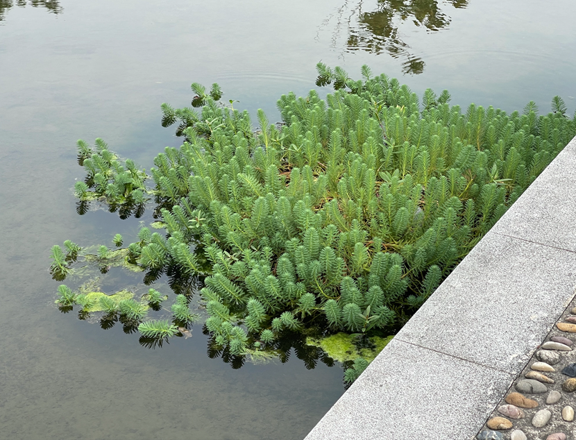 在与当地的工作人员交流当中,我们了解到,西溪湿地的修复主要分以下几个步骤走:一、外迁农居,取缔养鱼业、养猪业等不利于水质修复的产业;二、布置地下排污管与市政排污管连接,取缔以往直接向湿地排污的做法,将湿地内污水统一排至湿地外污水处理厂集中处理;三、引钱塘江水入湿地,加快湿地的水流速度以提高湿地的自净能力;四、定期清淤;五、水生植物的配置。此外,为进一步加固岸堤预防水土流失,一根根松木紧密排列在堤塘边,形成一道护卫岸堤的不腐不朽的生态屏障。