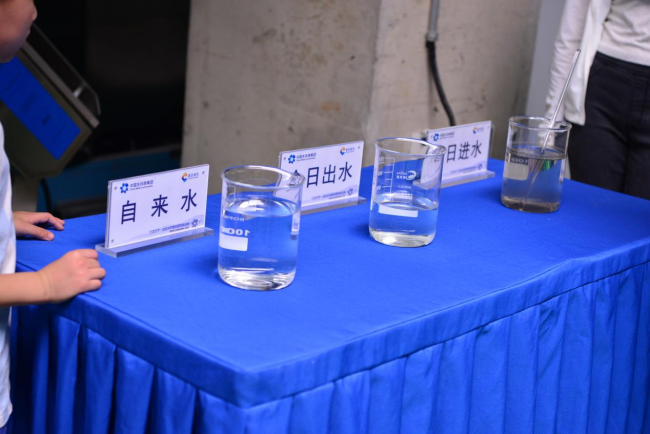 第二站,实习队伍来到有“上海最美污水处理厂”之美誉的南翔下沉式再生水厂。这座再生水厂位于嘉定区顺丰路科盛路路口,占地11.32公顷,日处理总规模达15万吨,总服务人口为39.7万人,服务面积达36.1平方公里,覆盖南翔新老镇区的8个社区。