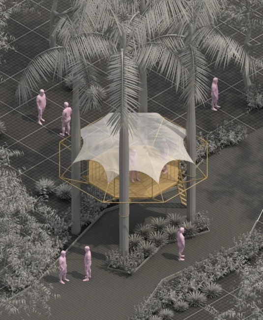 西溪湿地内部大部分植被,人们都只能通过看的方式体验,而通过构建一些轻量化的景观装置,提供给游客向林间深处探索的停留空间,同时自然材料且轻量的形态,不会对环境造成太大影响,也能够与湿地环境相交织。