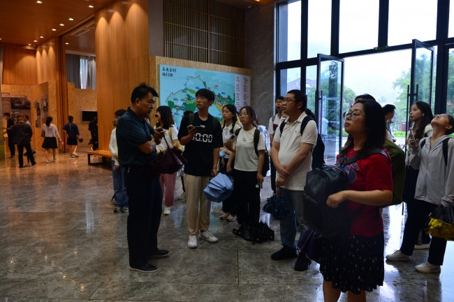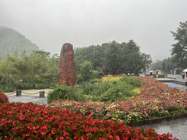 5日清晨,伴着蒙蒙细雨,师生们再次奔赴下一考察点——湖州安吉。滂沱大雨挡不住前行的脚步,烟雨朦胧更显山青水秀。沿着习近平总书记走过的道路,倾听当年总书记在余村提出“绿水青山就是金山银山”的故事,师生们深切感受到“两山转化”给余村带来的变化——从“卖石头”到“卖风景”的美丽蝶变。