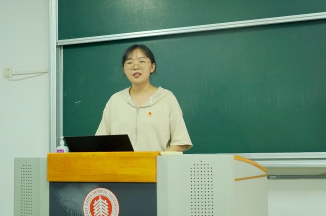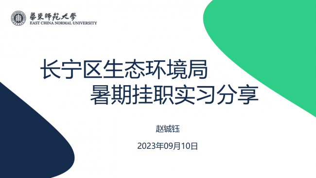 接着,赵铖钰同学分享了自己在长宁区生态环境局挂职实习的心得以及自己对生态学就业方面的信心,生态学专业面临的挑战很多,机遇同时也很多。在实习期间,赵铖钰同学主要协助带教老师对接长宁区生态系统和生物多样性保护提升规划和《长宁区生态系统和生物多样性保护提升规划》主题展——上海城市空间艺术季策展方案,与长宁区绿化与市容局、长宁区水务局等单位对接区生物多样性保护实施方案,并综合意见进行相关的整理工作。通过参与制作宣传物料、撰写各类公文以及对接实施方案等工作,锻炼了逻辑梳理和沟通交流的能力,也进一步认识到生态环境工作的重要性以及科普宣传工作在其中的作用。在人生选择的关键路口上,同学们要迎面挑战,把握机遇,扛牢肩上的政治责任,坚定对生态环境工作的信念感,巩固专业基础,努力做生态文明的“坚定信仰者”、“忠诚实践者”和“永续接力者”。