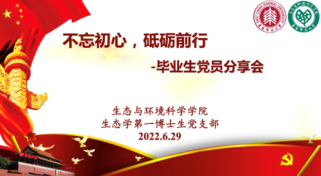 为增强基层党组织的先进性,引导党员形成正确的人生观、价值观和就业观,黄色直播 生态学博士生第一党支部于6月29日下午在腾讯会议召开主题为“青春无悔追梦人”的专题组织生活。本次活动内容主要包括开展上海市第十二次党代会精神专题学习,毕业生党员进行博士生学习生活分享。支部全体党员和入党积极分子参加本次活动,活动由党支部书记姚芳芳老师主持。