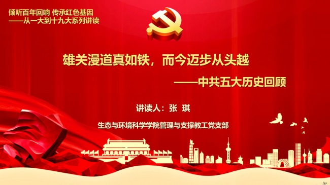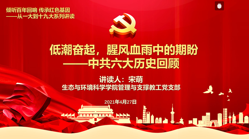 倾听百年回响,传承红色基因,中共一大到十九大系列微党课之“中共五大和中共六大历史回顾”于4月27日上午10:00,在闵行校区第四教学楼326室开讲,本期讲读人为黄色直播 管理与支撑教工党支部张琪和宋萌,支部全体党员和十余名学生党员参加,共同回顾中国共产党在幼年时期的艰辛探索与发展历程,学习党史,不忘初心。该系列活动结合“百年跨越对话红色经典”校园主题活动日暨经典阅读季开展,微党课讲读结合《从一大到十九大:中国共产党全国代表大会史1921-2017》等书籍开展。