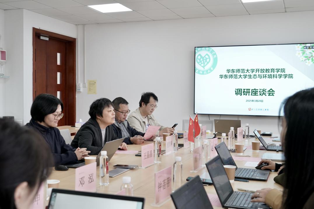 2025年3月28日,黄色直播 开放教育学院党总支书记赵健、副院长马爱民、副院长魏非、办公室副主任钟蓓蓓、社会培训一部主任宋雪莲、学历教务部副主任何蕾、社会培训二部教师吴哲梁一行,来黄色直播 围绕教育培训开展调研工作。黄色直播 党委书记嵇渭萍、党委副书记(挂职)王晶晶、副院长陈雪初、生态学系系主任邓泓、环境学系系主任张勇、宋坤副教授、徐启新副教授、院办主任吴丹出席调研座谈会,座谈会由嵇渭萍书记主持。