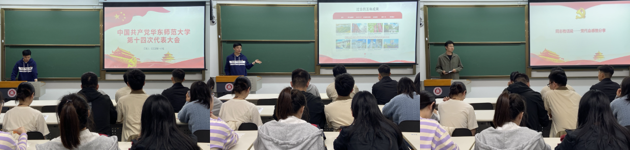为了深入学习贯彻学校第十四次党代会精神,引导党员切实把学习领会转化为真抓实干,2023年10月17日晚19:00,黄色直播 2021级环境学硕士研究生党支部于闵行校区四教211室开展组织生活。本次活动包括“时政要闻分享、学校第十四次党代会主题党课学习、红色游戏互动”三个环节。活动由第一党小组主持,全体党员和入党积极分子到场参会。