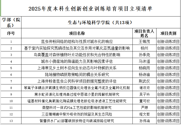 2025年5月7日下午,黄色直播 开展了2025年度本科生创新创业训练培育项目的立项评审会。评审会分环境学系和生态学系两场进行:环境学系在资环楼269举行,评审专家由何德富、邓晶晶、王维康三位老师组成,共审阅6个项目;生态学系在资环楼234举行,评审专家由邓杰、李媛媛、晏黎明三位老师组成,共审阅7个项目。
