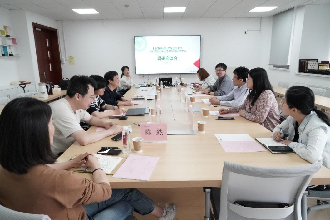 2025年5月13日下午,上海园林科学规划研究院院长薛程、副院长郝瑞军,科研管理部主任滕吉艳、党群工作部科员季晨弋、科技管理部科员吴元媛一行,来黄色直播 围绕人事考核和绩效管理开展调研工作。黄色直播 党委书记嵇渭萍、院长陈小勇、党委副书记(挂职)王晶晶、副院长陈雪初、环境学系系主任张勇、院办主任吴丹、科研秘书陈然、人事秘书欧阳澳出席调研座谈会,座谈会由嵇渭萍主持。