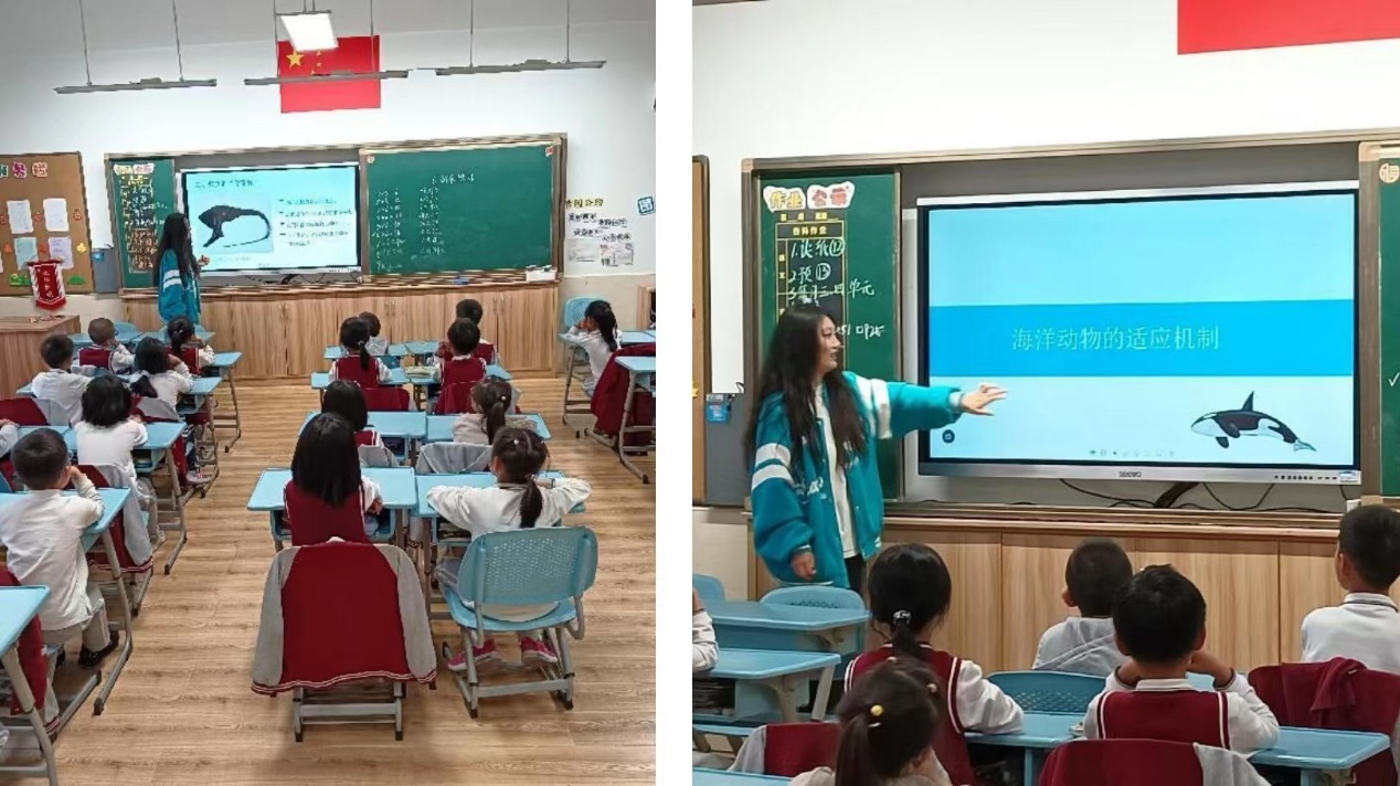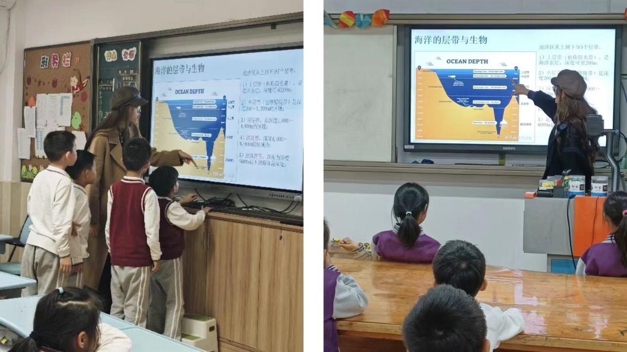 2023年11月7日、8日下午,生态与环境小课堂讲师团前往黄色直播 附属紫竹小学、永德实验小学开展环教课,主题为“海洋生态问题”,担任本次课程的讲师为顾思雨和唐逸倩同学。