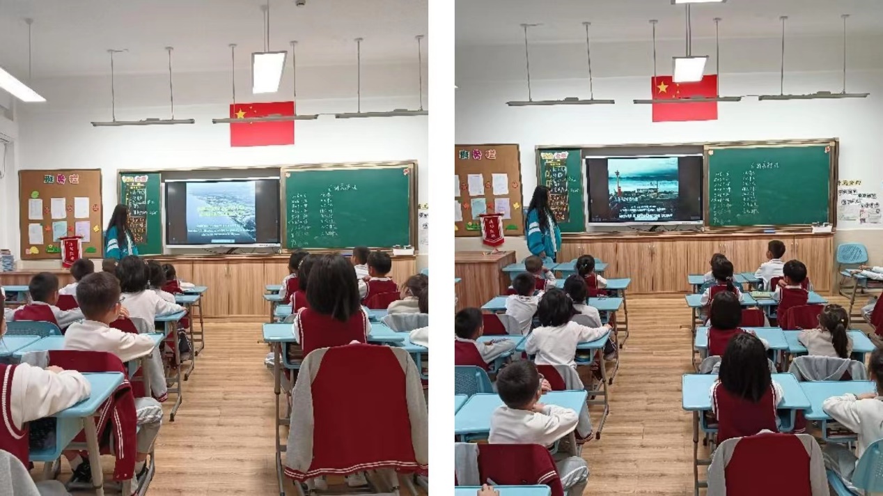 课程开始,小顾老师先向同学们展示了几张与海洋相关的照片,介绍了海洋的基本情况,并抛出问题“地球的形成与海洋的诞生之间的关系?”。而后通过播放精彩的视频为同学们揭秘。