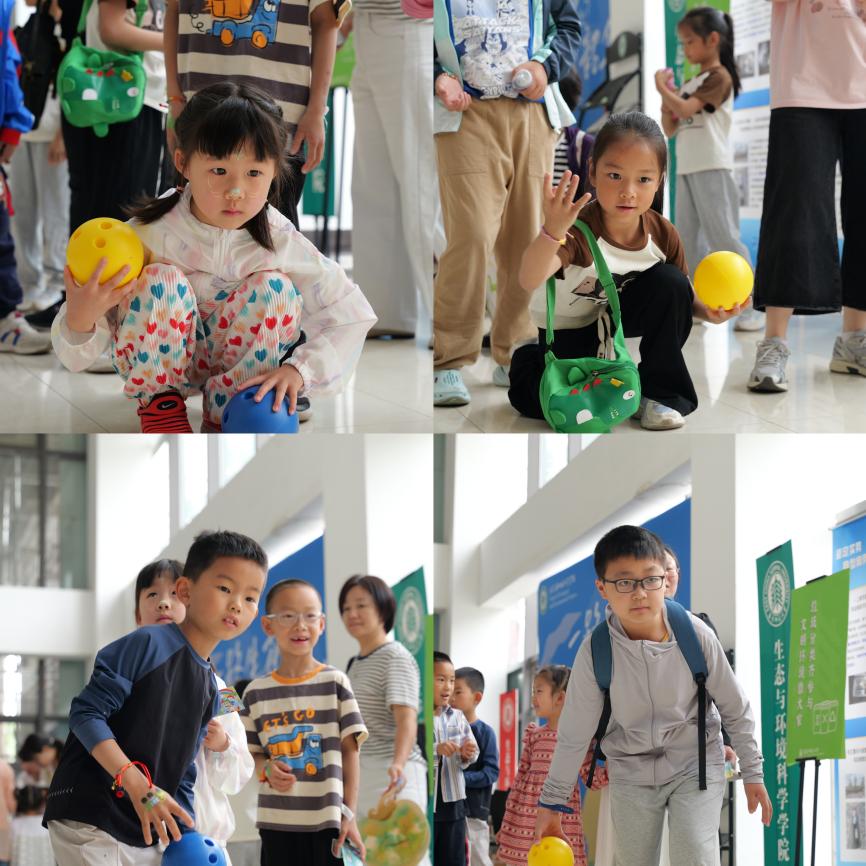 趣味保龄球区域,小朋友们依次用软球击倒用三角塔。每当瓶子倒下,现场响起阵阵欢呼声,全部击中的小朋友还能领取精美小礼品。这一项目不仅让孩子们在运动中锻炼了身体协调能力,也让他们在游戏中体验到乐趣与成就感。