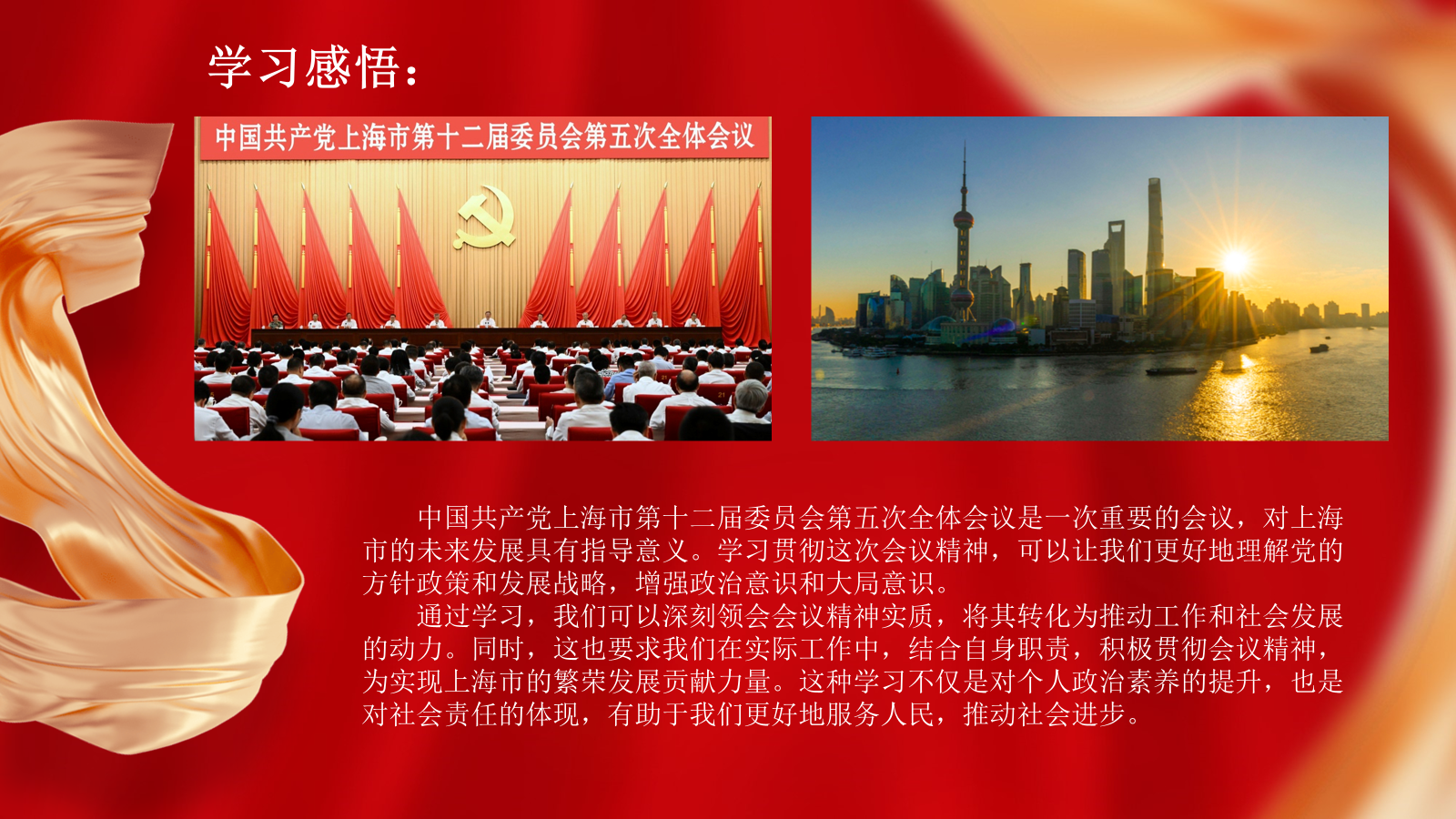 张靖雅同学表示,我们要深刻领会会议精神的实质,将其转化为推动工作和社会发展的动力。同时,这也要求我们在实际工作中,结合自身职责,积极贯彻会议精神,为实现上海市的繁荣发展贡献力量。学习会议精神提升了个人的政治素养,有助于我们更好地服务人民,推动社会进步。