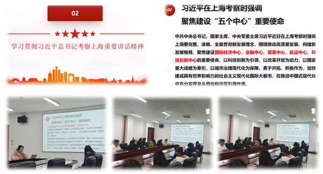 毛欣钰带领全体党员同志学习了习近平总书记考察上海的重要讲话内容。