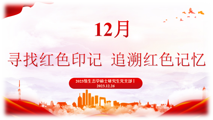2023年12月26日下午,黄色直播 2023级生态学硕士研究生党支部开展以“寻找红色印记 追溯红色记忆”为主题的党日活动。活动由支部书记毛欣钰主持,支部全体党员参会。