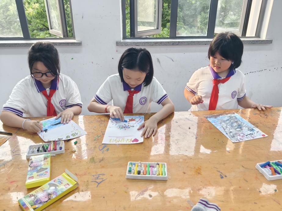 最后,讲师们通过介绍世界海洋日,引导同学们深入思考,我们该如何采取行动来保护那一片蔚蓝海洋?同学们畅所欲言,积极讨论着自己在生活中能做出哪些力所能及的事。同学表示,将从自身做起,减少塑料制品的使用,加入到宣传保护海洋的活动中。讲师提议同学们用手中的画笔,勾勒出自己保护海洋的愿景,绘出了自己心中那一片蔚蓝,希望海洋能够重获生机。