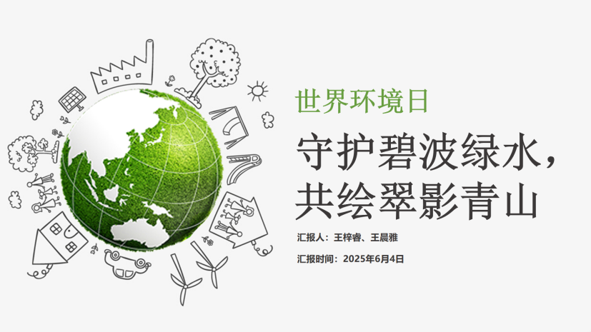 活动伊始,王梓睿以生动的讲解带大家走进世界环境日的绿色课堂。她首先追溯了世界环境日的诞生历程——1972年6月5日,联合国通过《人类环境宣言》并建议设立环保纪念日,同年10月正式确立每年6月5日为世界环境日,为全球环保事业树立重要里程碑。此外,她剖析了威胁地球生态的十大环境问题,从全球气候变暖到海洋污染,从生物多样性锐减到土地荒漠化,一个个触目惊心的环境问题引发了大家的深思。