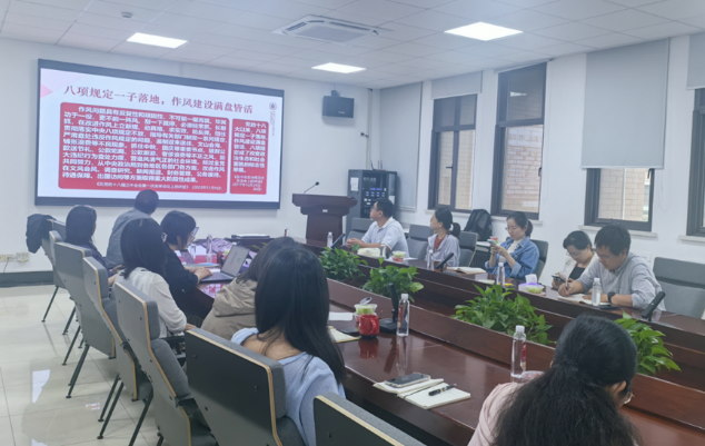 参观结束后,党员们返回资环楼269会议室。学院副院长陈雪初以“深入学习习近平总书记关于加强党的作风建设的重要论述”为题,为两个支部的党员上党课,院长夏建阳、副书记王晶晶作为结对联系两个党支部的学院党委委员参与学习和讨论。