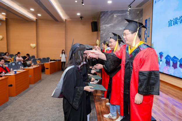 在庄严而温馨的拨穗正冠环节,教师代表们为每一位毕业生亲手拨穗、颁发学位证书。随着流苏从右至左轻轻一拨,标志着毕业生们正式从学生身份迈向更广阔的人生舞台,带着学院的期望、师长的嘱托和同窗的情谊,怀揣理想,整装再出发。
