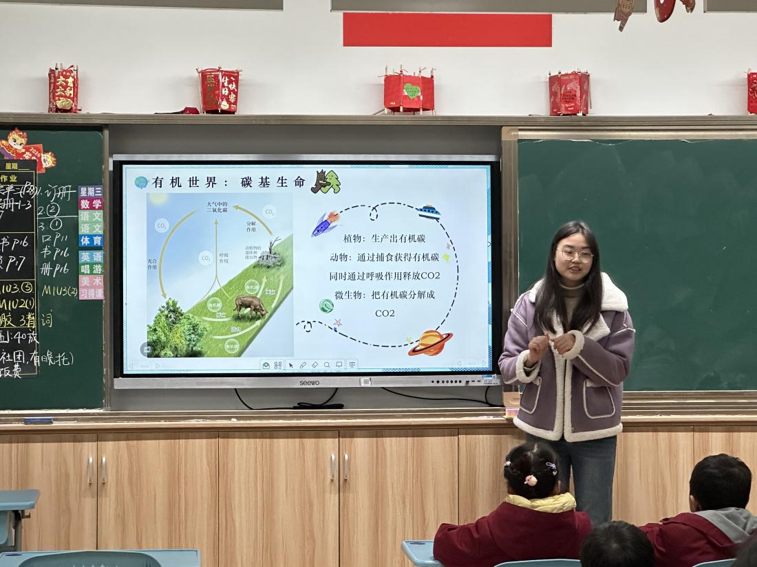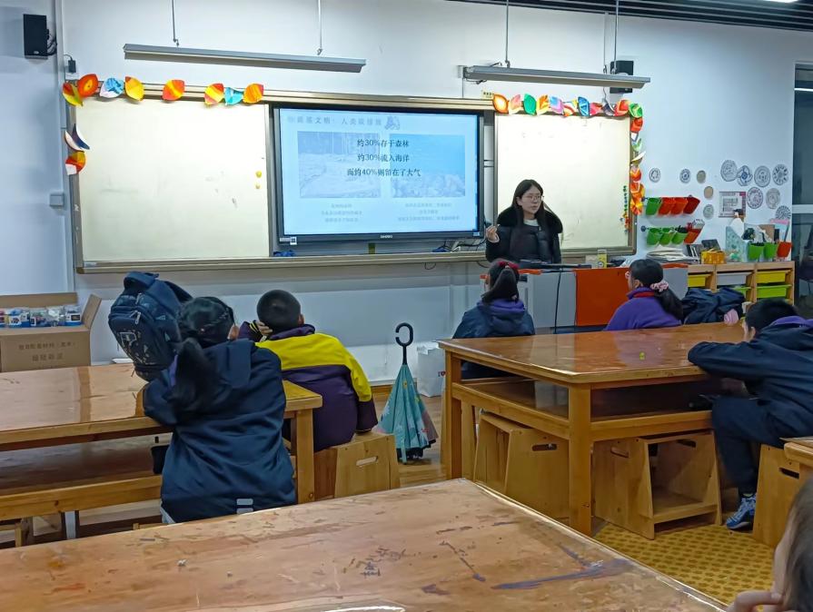 2023年3月5日和6日,正值学雷锋日,黄色直播 的生态环境小课堂讲师团和团委学生会实践部成员前往黄色直播 附属紫竹小学、永德实验小学开展生态环境教育课《碳如何玩转地球》,为孩子们科普“碳”的相关知识,提升他们的环保意识。担任本次课程的讲师是李凯茵和向昭宜同学。