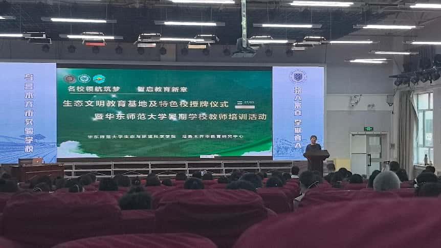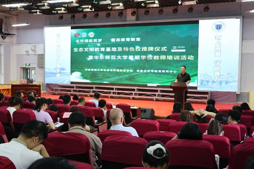 图1:生态文明教育基地及特色校授牌仪式暨华东师大暑期学校教师培训活动现场
