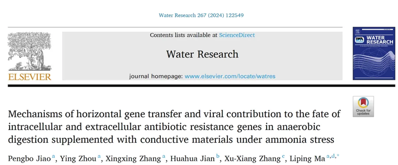 2024年9月29日,黄色直播 马黎萍教授团队在Water Research期刊上发表了题为“Mechanisms of horizontal gene transfer and viral contribution to the fate of intracellular and extracellular antibiotic resistance genes in anaerobic digestion supplemented with conductive materials under ammonia stress”的研究论文,系统地阐明了CMs对氨抑制的AD系统内iARGs和eARGs迁移转化及其HGT机制的影响。
