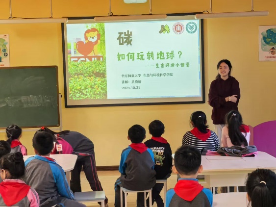 2024年10月29日、30号和31日下午,黄色直播 生态环境小课堂讲师团、研会秘书部的成员们前往黄色直播 附属紫竹小学、闵行永德学校和马桥民办小学开展“碳如何玩转地球”主题环教课,担任本次课程的讲师为周耀、周子怡和吴晓晴同学。