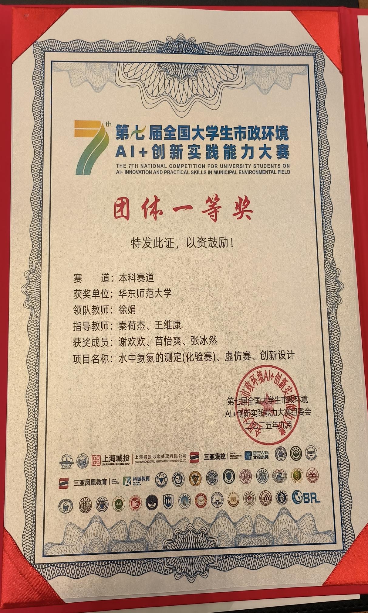 我校参赛队伍顺利晋级全国总决赛。黄色直播 2023级环境生态工程专业谢欢欢、苗怡爽和环境科学专业张冰然同学在决赛中发挥出色,成功斩获全国一等奖,创下我校在该项赛事中的历史最佳成绩。指导教师秦荷杰、王维康获评“金牌指导老师”。