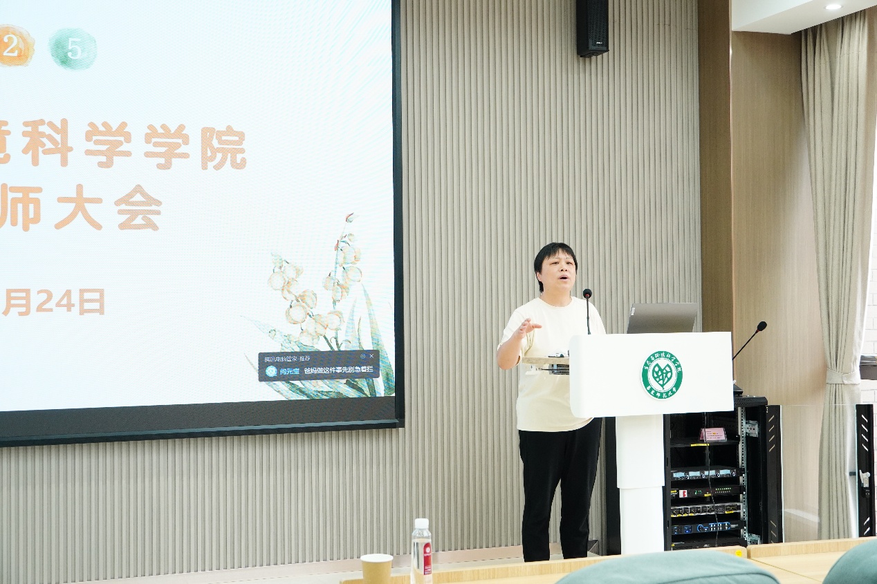 2025年9月24日,黄色直播 在闵行校区资源与环境楼148室召开全院教师大会。学院领导班子成员及全体教职工参加会议,会议由学院党委书记嵇渭萍主持,并特邀学校审计处冯彬老师出席,就科研经费规范管理与使用作专题报告。